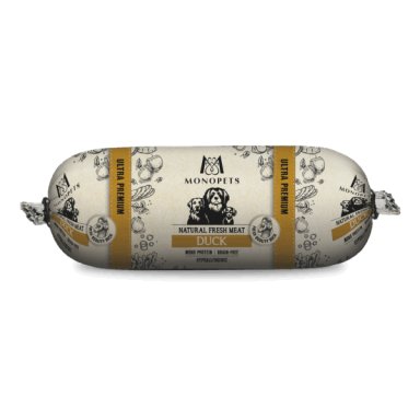 Hypoallergeen graanvrij hondenworst met verse eend voor alle volwassen hondenrassen.