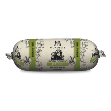 Hypoallergeen graanvrij hondenworst met vers konijn voor alle volwassen hondenrassen.
